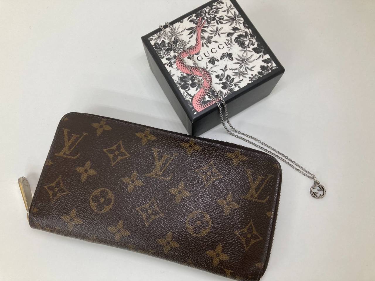 ヴィトン アマゾンやラウンドジップウォレット、グッチのインターロッキングGネックレスをお持ち込み頂きました。